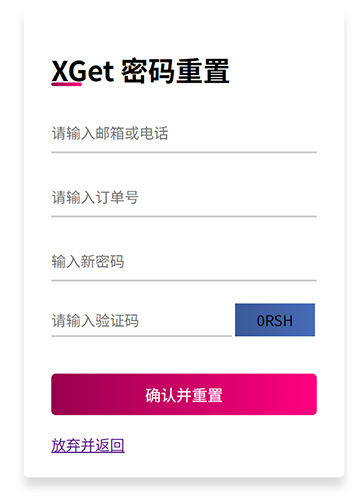 第一行:输入XGet账号, 一般是邮箱或电话号码